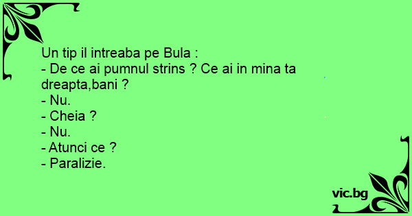 - De ce ai pumnul strins ? Ce ai in mina ta dreapta,bani ?