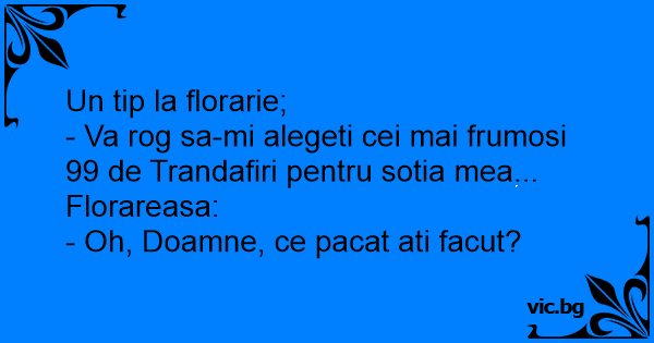 - Va rog sa-mi alegeti cei mai frumosi 99 de Trandafiri pentru sotia mea...