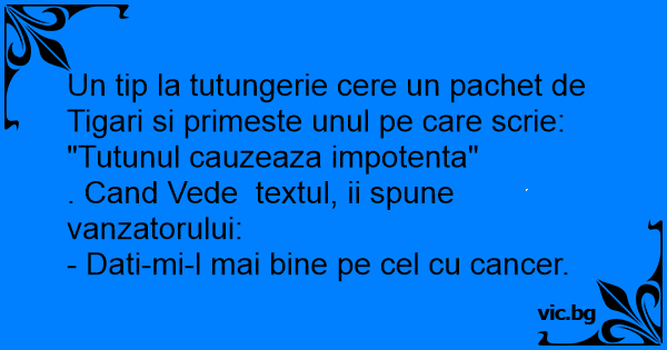 Un tip la tutungerie cere un pachet de Tigari si primeste unul pe care scrie: