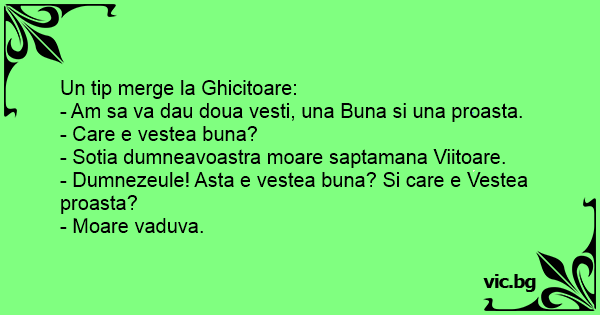 - Dumnezeule! Asta e vestea buna? Si care e Vestea proasta?