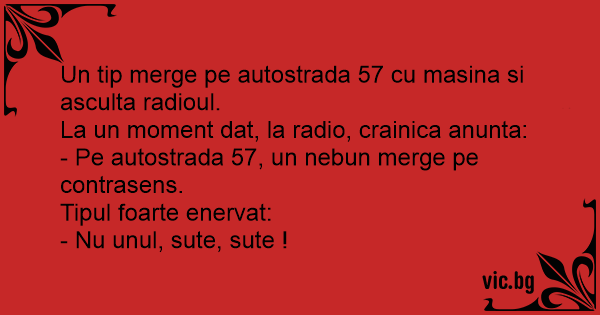 - Pe autostrada 57, un nebun merge pe contrasens.