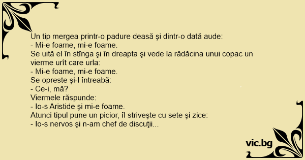 Atunci tipul pune un picior, îl striveşte cu sete şi zice: