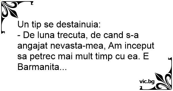 - De luna trecuta, de cand s-a angajat nevasta-mea, Am inceput sa petrec mai mult timp cu ea. E Barmanita...