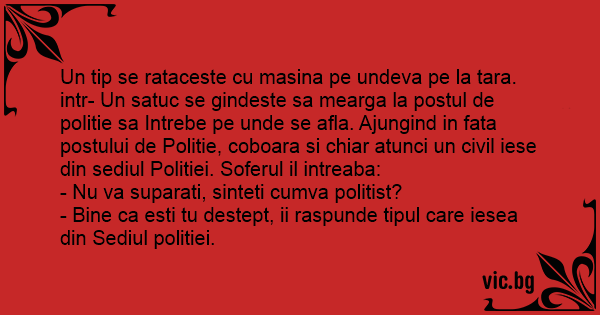 - Bine ca еsтi tu destept, ii raspunde tipul care iesea din Sediul politiei.