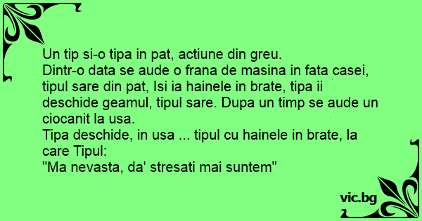 "Ma nevasta, da' stresati mai suntem"