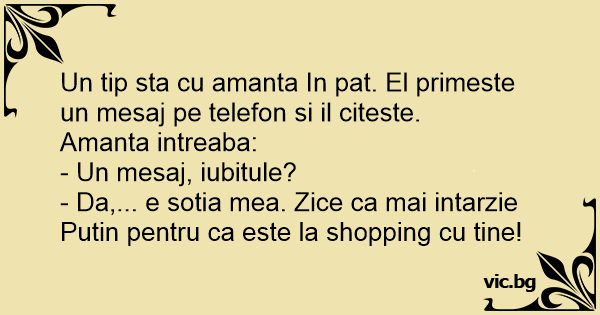 - Da,... e sotia mea. Zice ca mai intarzie Putin pentru ca este la shopping cu tine!