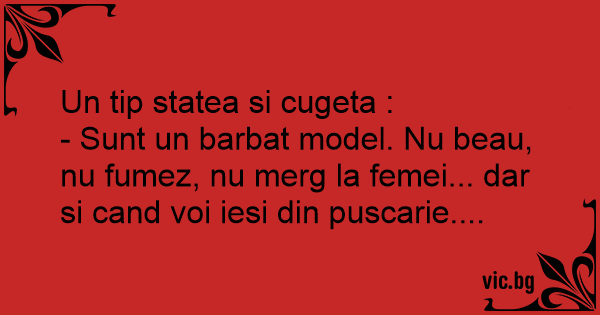 - Sunt un barbat model. Nu beau, nu fumez, nu merg la femei... dar si cand voi iesi din puscarie....