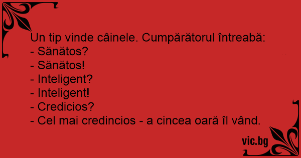 Un tip vinde câinele. Cumpărătorul întreabă:
