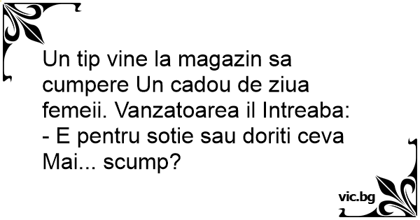 Un tip vine la magazin sa cumpere Un cadou de ziua femeii. Vanzatoarea il Intreaba: