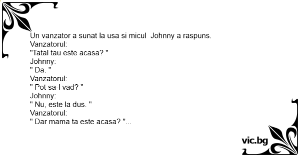 Un vanzator a sunat la usa si micul Johnny a raspuns.