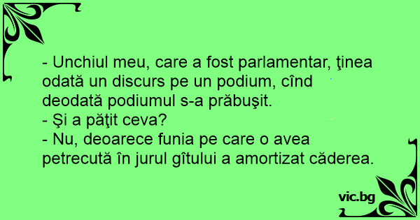 - Unchiul meu, care a fost parlamentar, ţinea odată un discurs pe un podium, cînd deodată podiumul s-a prăbuşit.