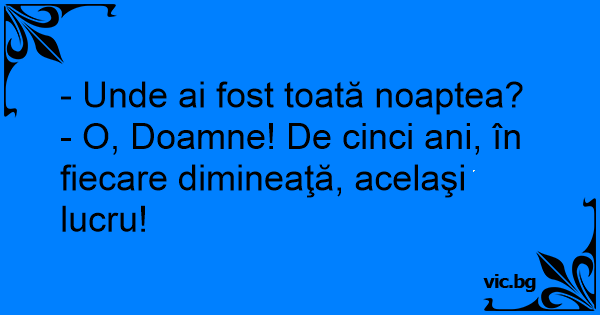 - O, Doamne! De cinci ani, în fiecare dimineaţă, acelaşi lucru!