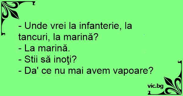 Новобранец заявява на наборната комисия, че иска да стане моряк.
