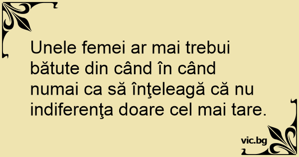 Unele femei ar mai trebui bătute din când în când numai ca să înţeleagă că nu indiferenţa doare cel mai tare.