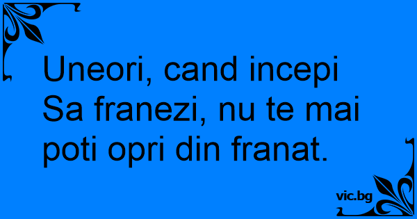 Uneori, cand incepi Sa franezi, nu te mai poti opri din franat.