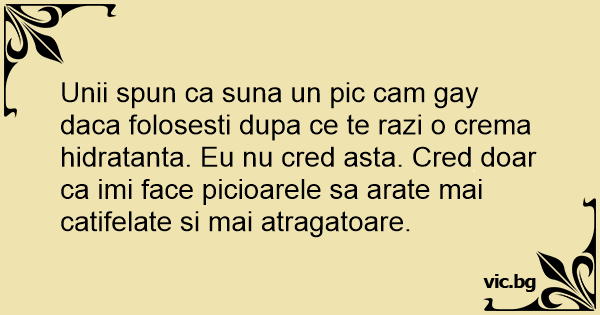 Unii spun ca suna un pic cam gаy daca folosesti dupa ce te razi o crema hidratanta. Eu nu cred asta. Cred doar ca imi face picioarele sa arate mai catifelate si mai atragatoare.