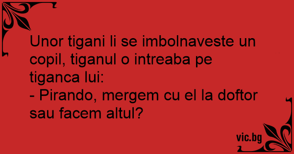 Unor tigani li se imbolnaveste un copil, tiganul o intreaba pe tiganca lui: