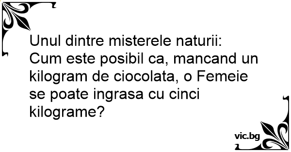 Cum este posibil ca, mancand un kilogram de ciocolata, o Femeie se poate ingrasa cu cinci kilograme?