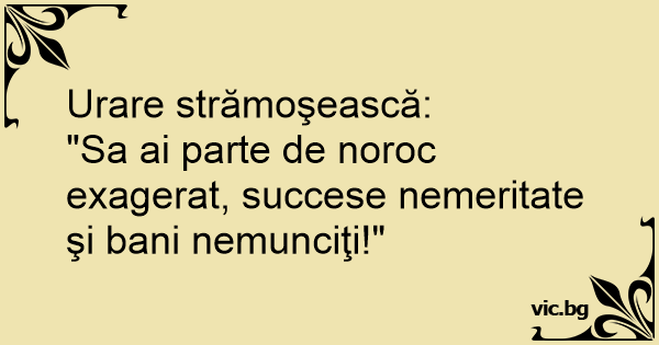 "Sa ai parte de noroc exagerat, succese nemeritate şi bani nemunciţi!"