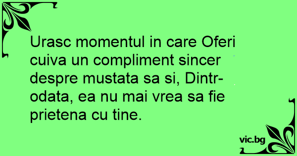 Urasc momentul in care Oferi cuiva un compliment sincer despre mustata sa si, Dintr-odata, ea nu mai vrea sa fie prietena cu tine.