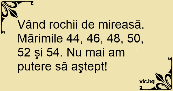 Vând rochii de mireasă. Mărimile 44, 46, 48, 50, 52 şi 54. Nu mai am putere să aştept!