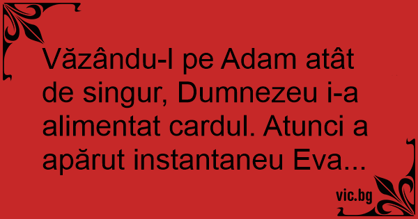 Văzându-l pe Adam atât de singur, Dumnezeu i-a alimentat cardul. Atunci a apărut instantaneu Eva...