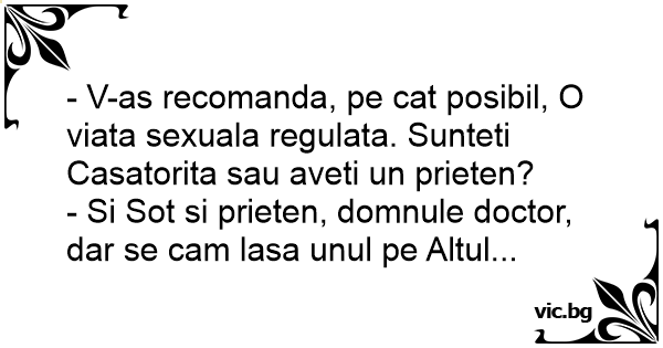 - Si Sot si prieten, domnule doctor, dar se cam lasa unul pe Altul...