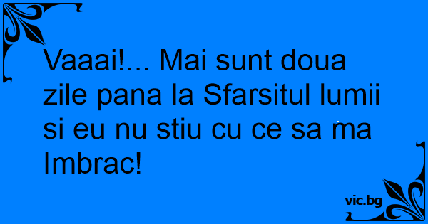 Vaaai!... Mai sunt doua zile pana la Sfarsitul lumii si eu nu stiu cu ce sa ma Imbrac!