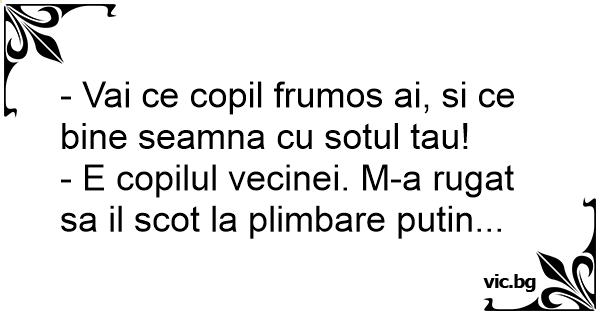 - Vai ce copil frumos ai, si ce bine seamna cu sotul tau!