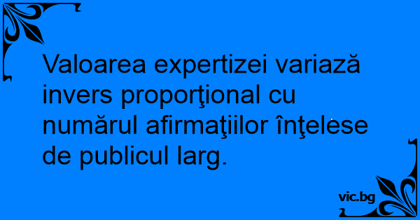 Valoarea expertizei variază invers proporţional cu numărul afirmaţiilor înţelese de publicul larg.