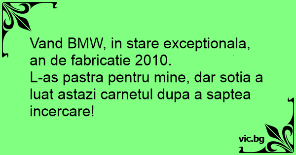 L-as pastra pentru mine, dar sotia a luat astazi carnetul dupa a saptea incercare!