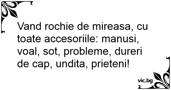Vand rochie de mireasa, cu toate accesoriile: manusi, voal, sot, probleme, dureri de cap, undita, prieteni!