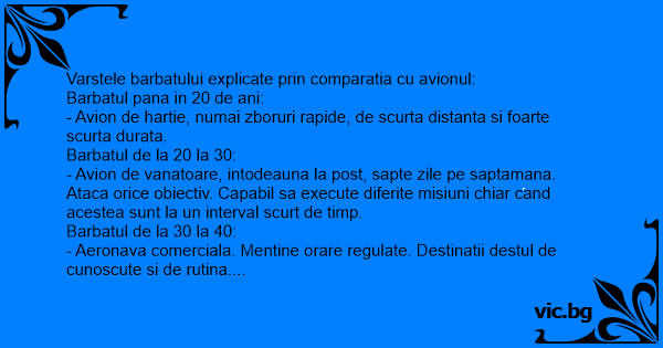 - Aeronava cargo. Pregatiri intense si multa munca inainte de decolare. Odata in aer, manevreaza lent si ofera foarte putin confort in timpul zborului. Clientela este compusa in majoritate din valize si tot felul de vechituri. Barbatul de la 60 la 70: