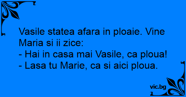 Vasile statea afara in ploaie. Vine Maria si ii zice: