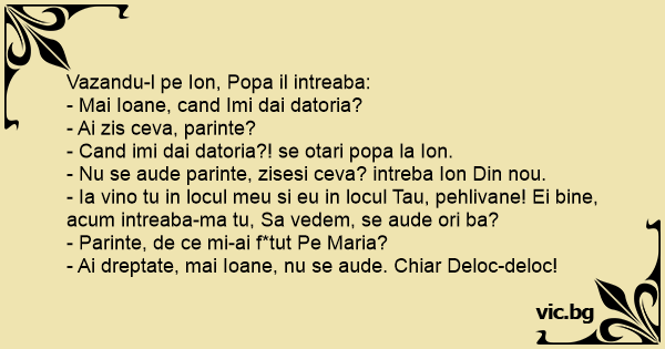 - Ai dreptate, mai Ioane, nu se aude. Chiar Deloc-deloc!