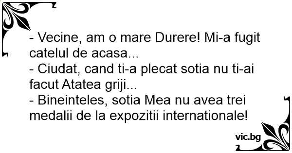 - Vecine, am o mare Durere! Mi-a fugit catelul de acasa...