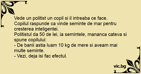 Copilul raspunde ca vinde seminte de mar pentru cresterea inteligentei.