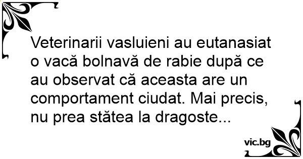 Veterinarii vasluieni au eutanasiat o vacă bolnavă de rabie după ce au observat că aceasta are un comportament ciudat. Mai precis, nu prea stătea la dragoste...