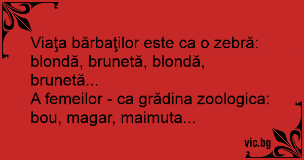 Viaţa bărbaţilor este ca o zebră: blondă, brunetă, blondă, brunetă...