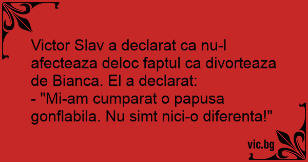 Victor Slav a declarat ca nu-l afecteaza deloc faptul ca divorteaza de Bianca. El a declarat:
