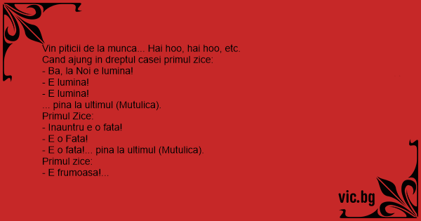 Vin piticii de la munca... Hai hoo, hai hoo, etc.