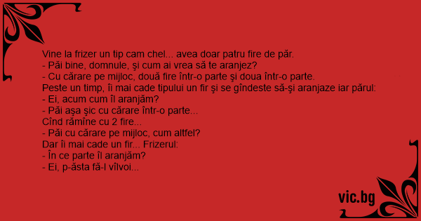 Vine la frizer un tip cam chel... avea doar patru fire de păr.
