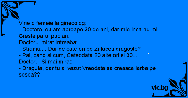 - Doctore, eu am aproape 30 de ani, dar mie inca nu-mi Creste parul pubian.