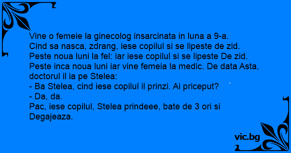 Peste inca noua luni iar vine femeia la medic. De data Asta, doctorul il ia pe Stelea: