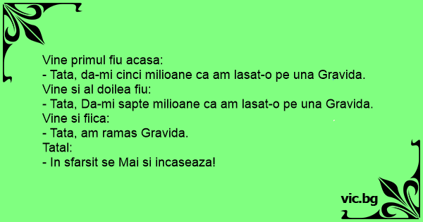 - Tata, da-mi cinci milioane ca am lasat-o pe una Gravida.