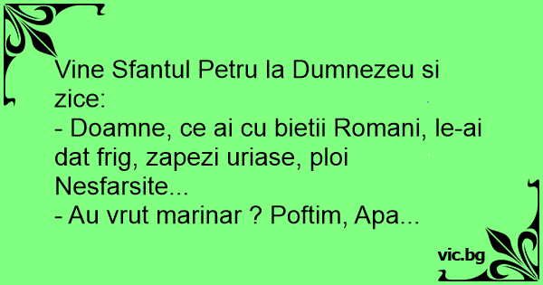 - Doamne, ce ai cu bietii Romani, le-ai dat frig, zapezi uriase, ploi Nesfarsite...