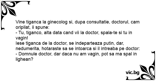 - Tu, tiganco, alta data cand vii la doctor, spala-te si tu in vagin!