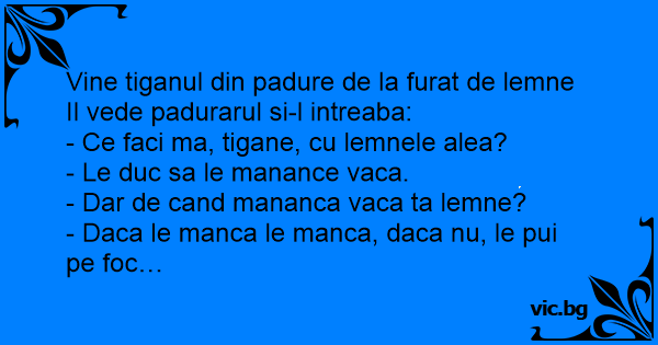Vine tiganul din padure de la furat de lemne Il vede padurarul si-l intreaba: