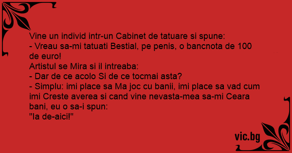 - Vreau sa-mi tatuati Веsтiаl, pe реnis, o bancnota de 100 de euro!