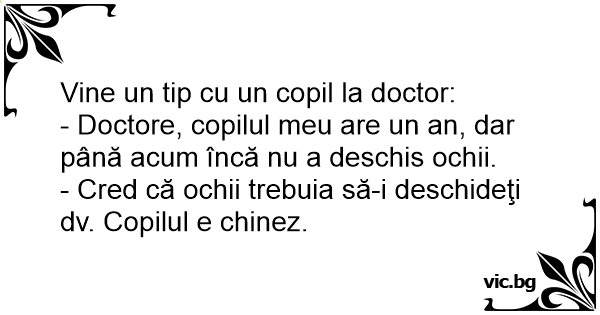 - Doctore, copilul meu are un an, dar până acum încă nu a deschis ochii.
